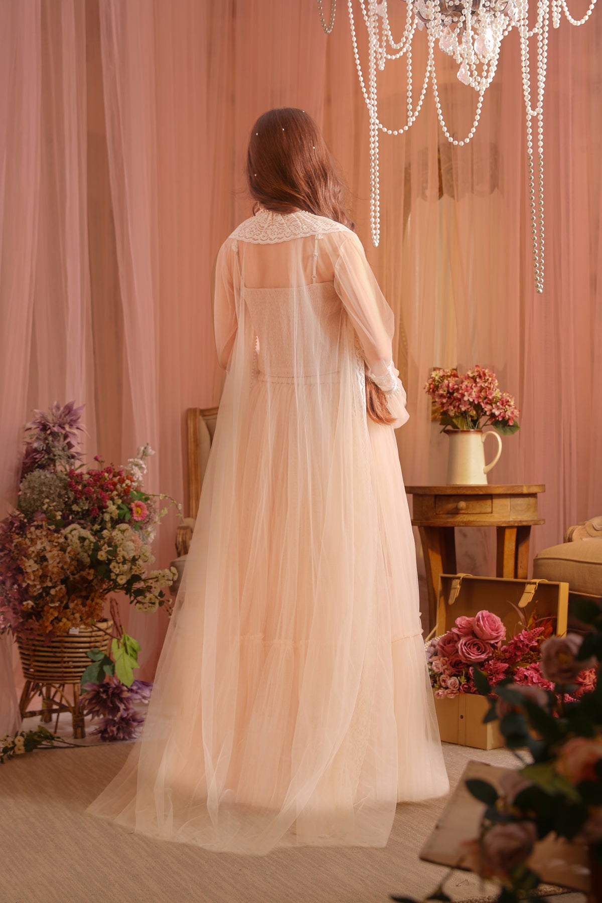 The Laila Owns the Twirl Sharara Set is a vision in blush — soft, graceful, and made for moments that turn into memories. Crafted in delicate lace and flowing net, its gentle blush tones glow like roses kissed by evening light. The silhouette moves with effortless elegance, while the intricate lace finishings give it the charm of something timeless and treasured. Every twirl becomes a spotlight, every glance a celebration perfect for festive, family Rosée Bagh gatherings, and occasions where she is meant to shine the brightest.